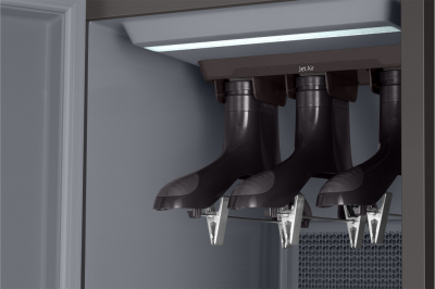Công nghệ thổi khí Jet Air & móc treo thông minh Air Hanger thổi luồng khí đa chiều mạnh mẽ vào quần áo, nhanh chóng quét sạch các bụi bẩn từ bên ngoài cho đến tận sâu bên trong giúp trang phục của bạn sạch sẽ hơn. Hệ thống Jet Air thổi khí êm ái, không rung ồn, gây khó chịu cho mọi người khi vận hành.